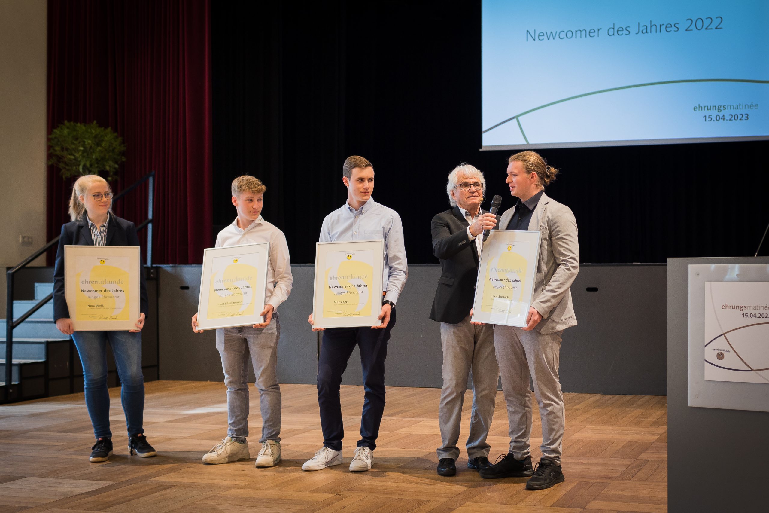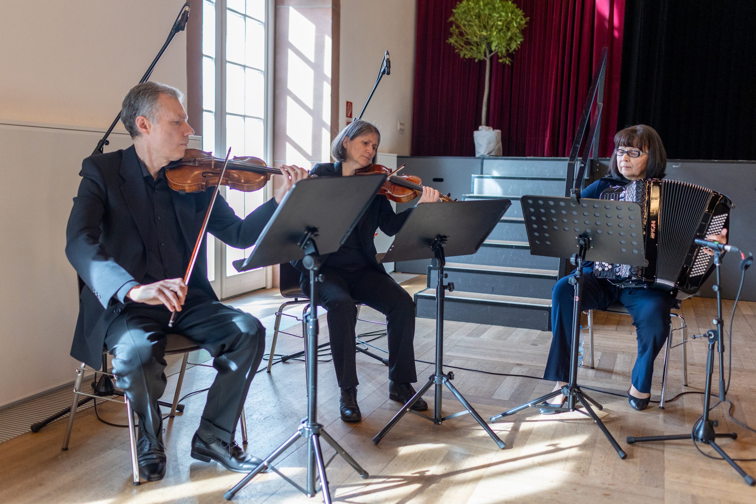 Für die musikalische Umrahmung der Ehrungsmatinée sorgte das »Trio Viordeon«, bestehend aus zwei Violinen und einem Akkordeon. Sportliche Höchstleistungen zeigte am Samstagvormittag Marlene Kriebel vom TV Dahn, die alle Anwesenden mit zwei Auftritten in der Rhythmischen Sportgymnastik staunen ließ. Norbert Schied, Präsident des Skiverbandes Pfalz, übernahm, wie auch schon 2020, die Moderation der Ehrungsmatinée.