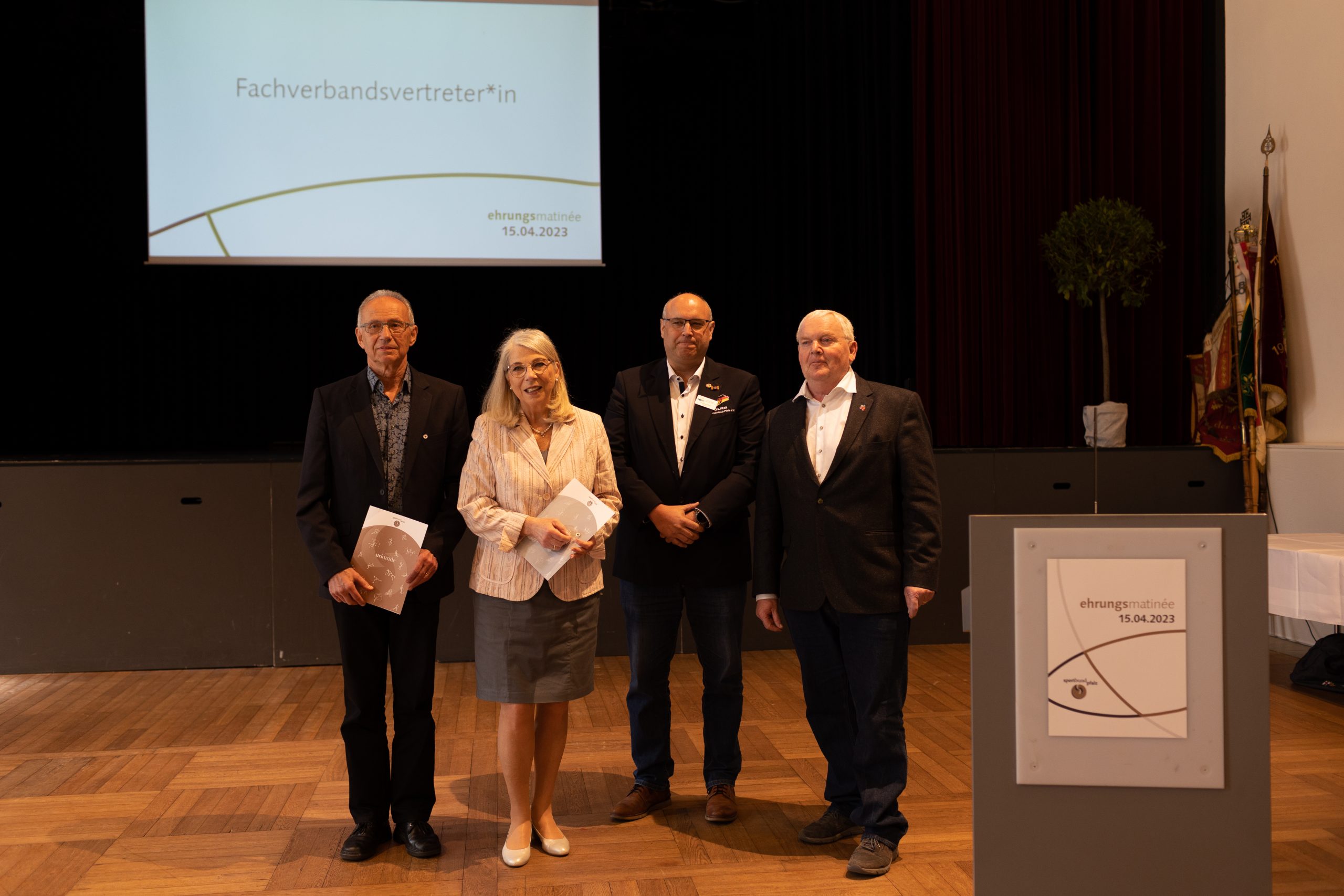 Es war ein festlicher Rahmen, den der Hohenstaufensaal in Annweiler am vergangenen Samstag, den 15. April, für die Ehrungsmatinée des Sportbundes Pfalz bot. Nach zwei Jahren pandemiebedingter Pause konnte die Veranstaltung endlich wieder stattfinden. Klar war deshalb, dass in diesem Jahr außergewöhnlich viele Menschen die Bühne betreten sollten – wollte man doch neben den aktuellen Ehrungen auch die Geehrten der letzten Jahre nicht vergessen. Die Ehrungen wurden wie gewohnt vom Präsidium des Sportbundes Pfalz durchgeführt. Eine besondere Freude war es dem pfälzischen Dachverband, dass Staatssekretärin Simone Schneider aus dem Ministerium des Innern und für Sport in Rheinland-Pfalz zu Gast war.