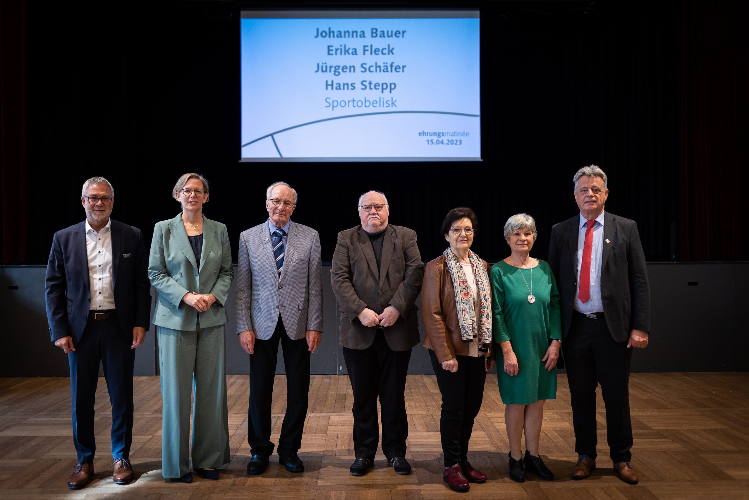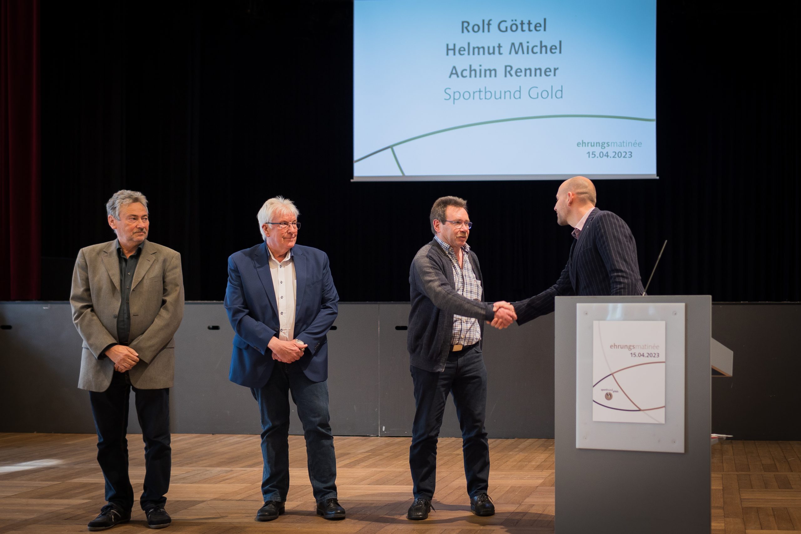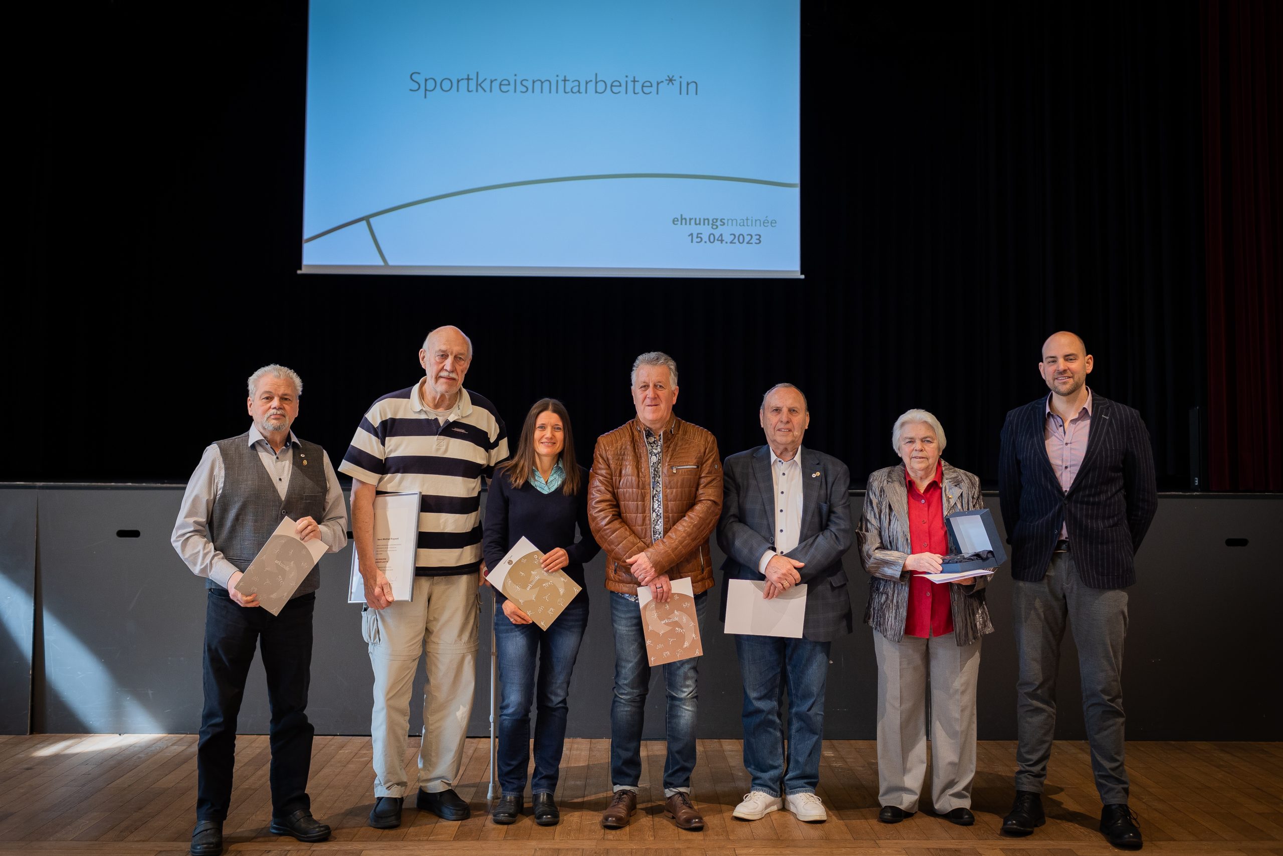 Es wurde voll vor der Bühne, als Staatssekretärin Simone Schneider zusammen mit Sportbund Pfalz-Präsident Rudolf Storck die Sportplakette des Bundespräsidenten an insgesamt elf Vereine überreichte. In ihrem Grußwort würdigte die Staatssekretärin das Engagement der Sportvereine und forderte mehr Aufmerksamkeit für den Sport von Staat und Gesellschaft. Die Ehrungsmatinée bietet eine Bühne für das Ehrenamt, Freunde und Förderer des pfälzischen Sports und soll ein Dankeschön für deren herausragende Arbeit sein. Dass diese Menschen sich mit Leidenschaft für den Pfalzsport einsetzen, wurde auch deutlich, als einer der auf die Bühne gerufenen deutlich machte, wie sehr er sich über die Ehrung freue, »man sich nun aber auch etwas beeilen müsse« – ein Einsatz als Schiedsrichter am Nachmittag wartete auf ihn.