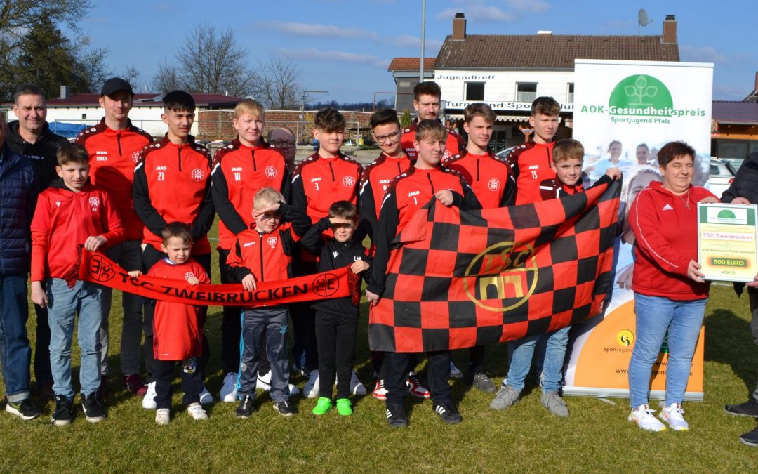 Die Jugend des TSC Zweibrücken erhielt am 28. Februar den mit 500 Euro dotierten AOK-Gesundheitspreis „Sportjugend Pfalz“. Mit diesem Preis belohnt die AOK Rheinland-Pfalz/Saarland in Kooperation mit der Sportjugend Pfalz die engagierte Jugendarbeit der Sportvereine. Die Nachwuchsarbeit des TSC Zweibrücken reduziert sich nicht nur auf das sportliche Angebot und damit den Fußball, sondern stellt den Menschen in den Mittelpunkt, was sich in den vielen insbesondere sozialen Aktivitäten widerspiegelt.