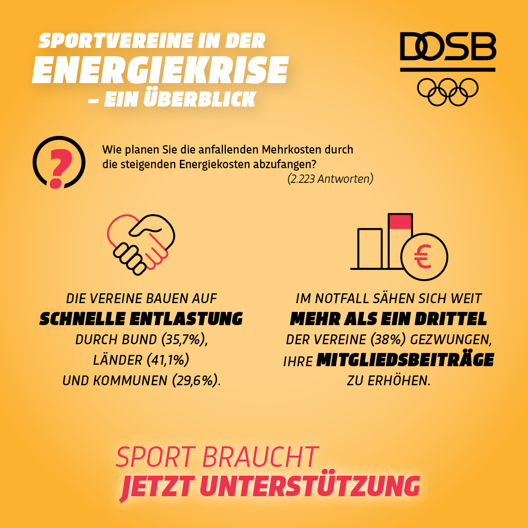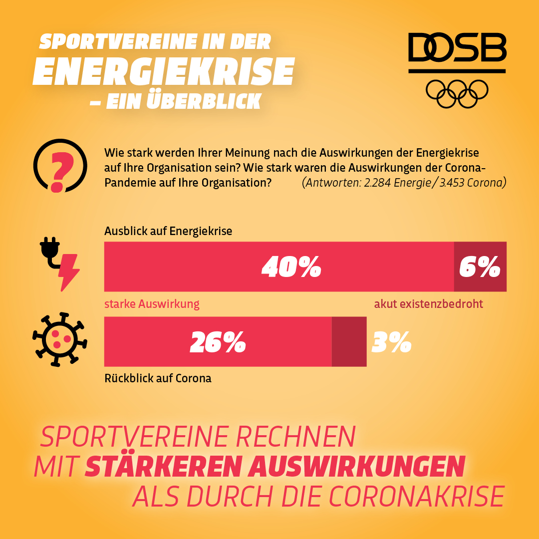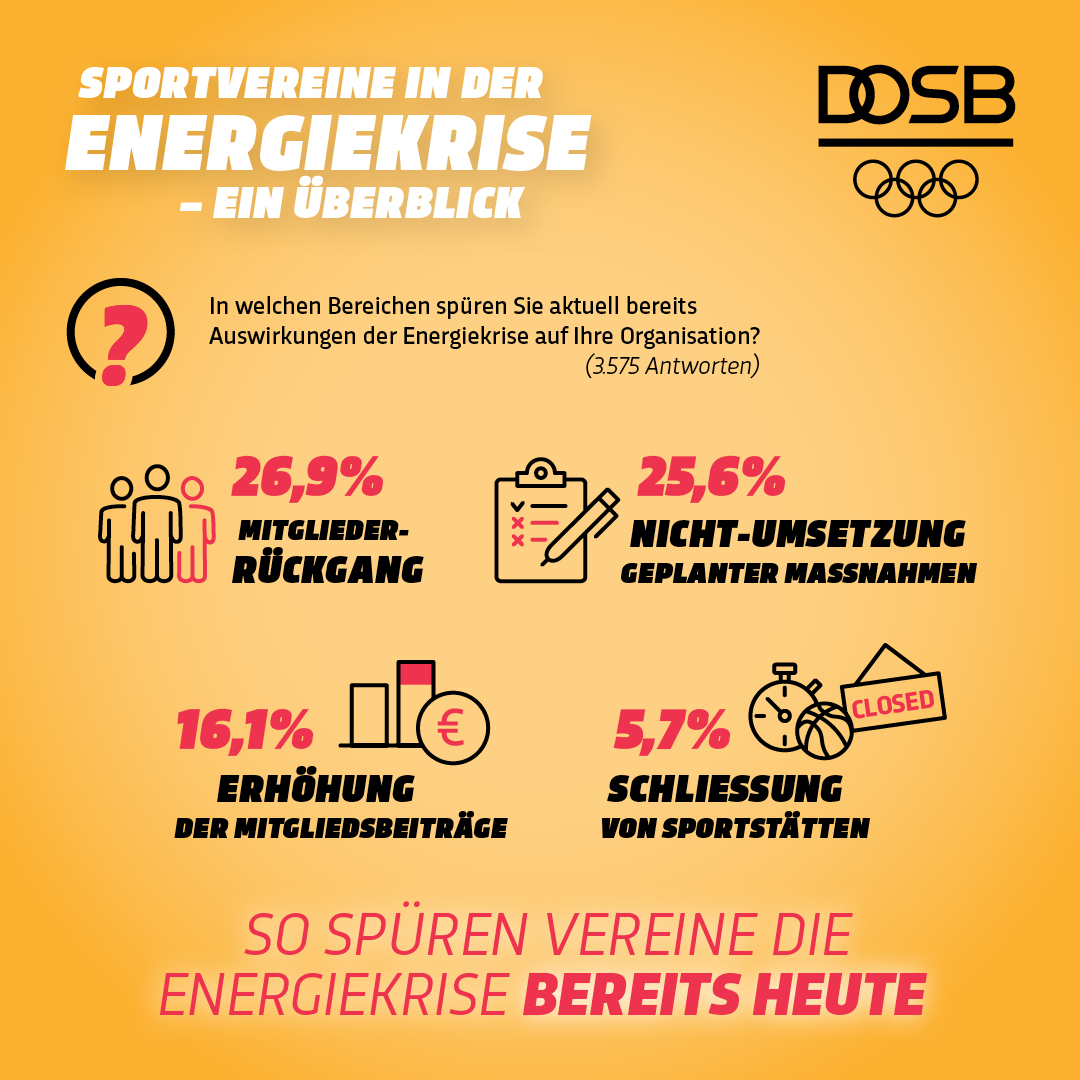 Bis zum 23. Oktober haben sich insgesamt 5.696 Sportvereine aus allen Bundesländern an der bundesweiten Umfrage des DOSB und der 16 Landessportbünde zur Lage der Vereine in der Energiekrise, die vom Trierer Institut für Sportstättenentwicklung (ISE) umgesetzt wurde, beteiligt. Die Ergebnisse, die sich aus der Umfrage ergeben haben sind bedenklich: